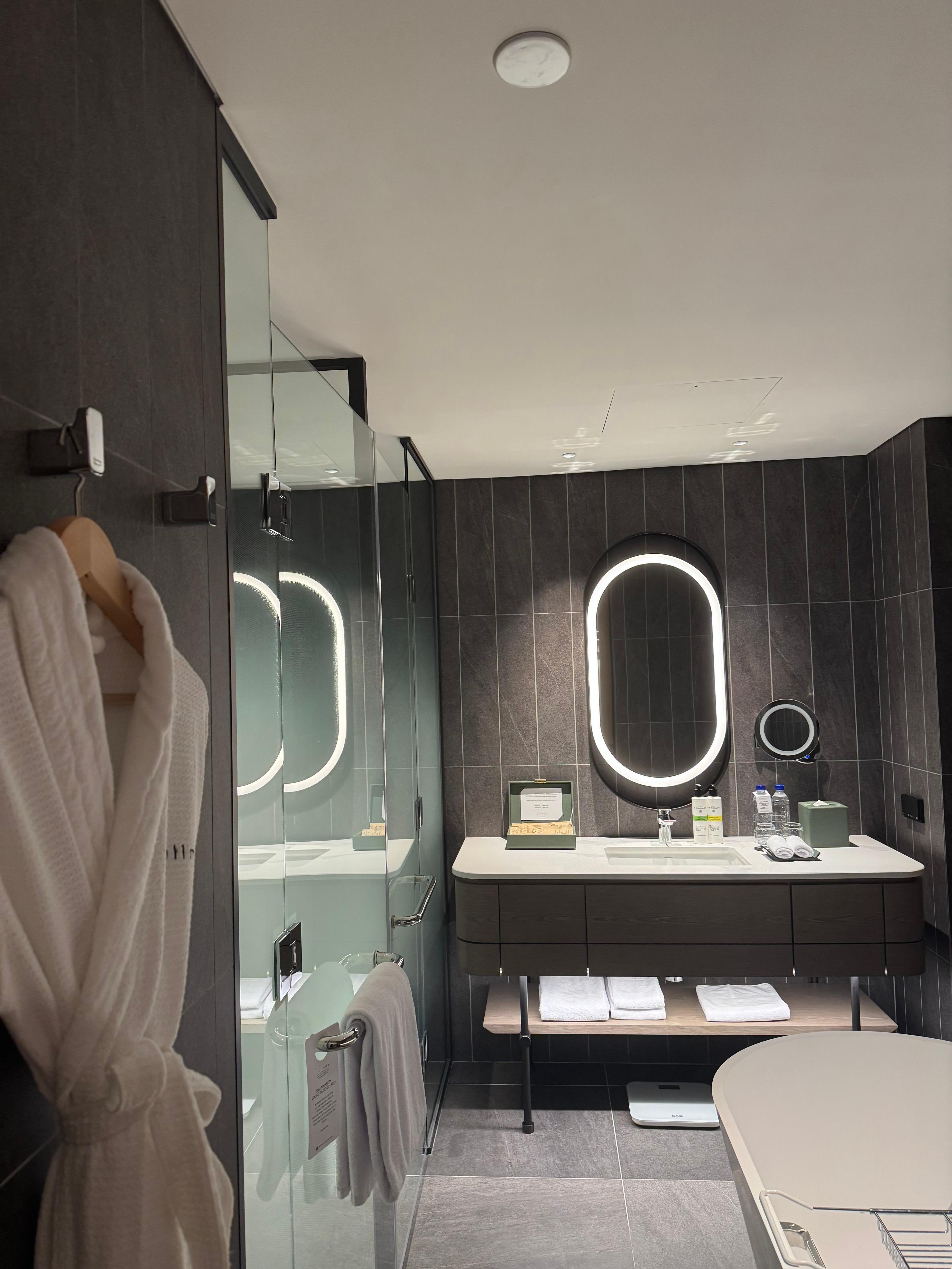 호텔 입구에 들어서는 순간, "아 여기는 확실히 다르구나"라는 생각이 들었습니다. 외관은 세련되면서도 과하지 않은 디자인이라 첫인상부터 만족스러웠습니다. 체크인은 생각보다 빠르게 진행되었고, 직원분들이 친절하게 주변 시설 안내까지 해주셔서 기분 좋은 출발이 가능했습니다.