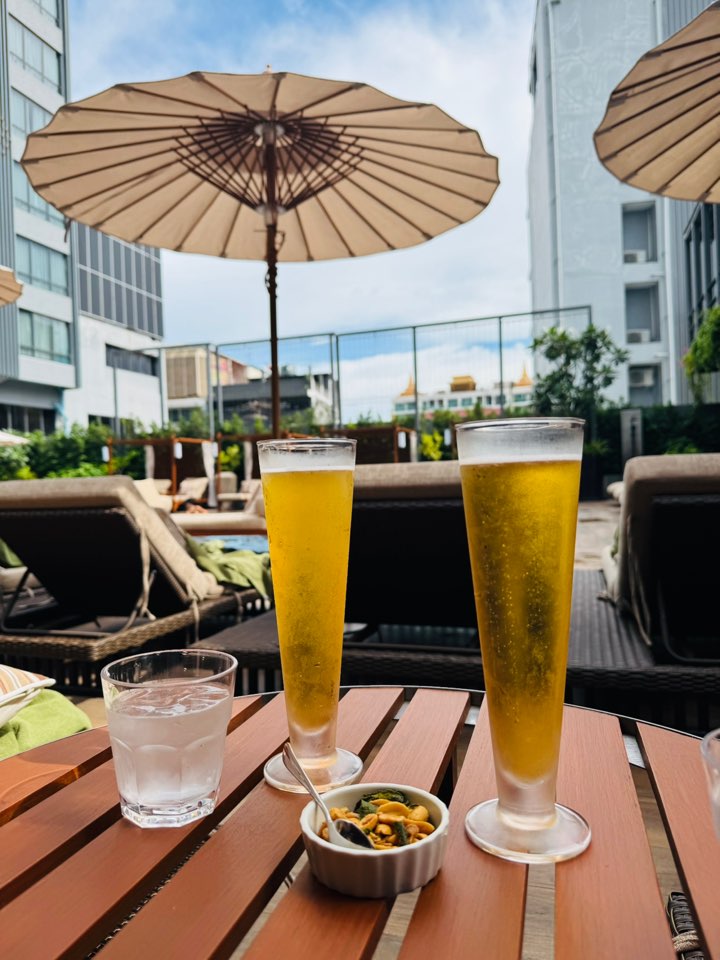 수영장 주변에는 썬베드와 파라솔이 잘 배치되어 있어 간단히 책을 읽거나 음료를 즐기며 쉬기에도 좋았어요. 분위기가 워낙 좋아서, 굳이 밖에 나가지 않아도 리조트 느낌을 충분히 낼 수 있었습니다. 썬베드에 누워 한잔 하는 재미가 크죠:)